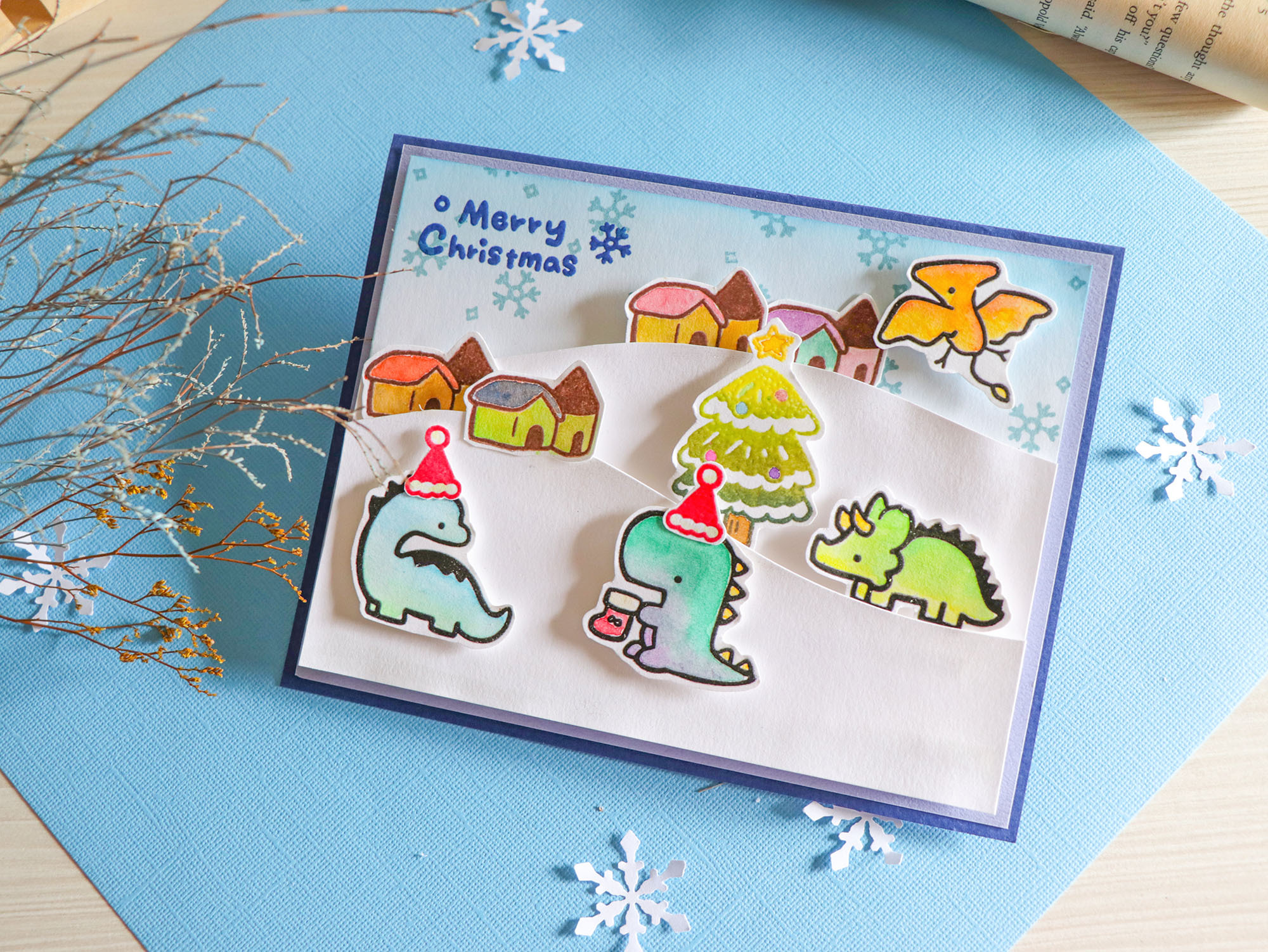 Dinosaurs unusually survived the ice age and happily decorated Christmas trees to welcome Christmas.