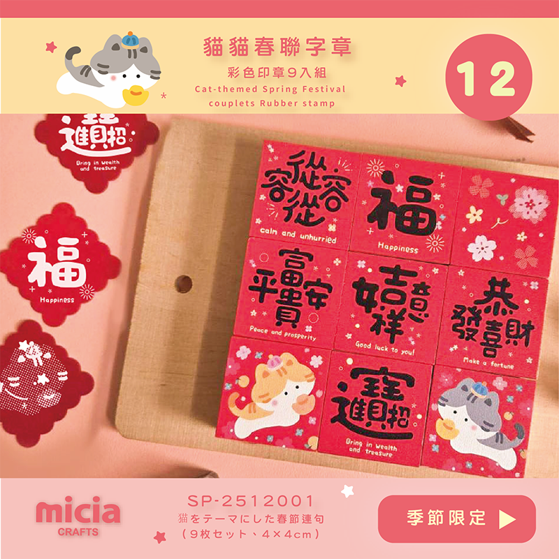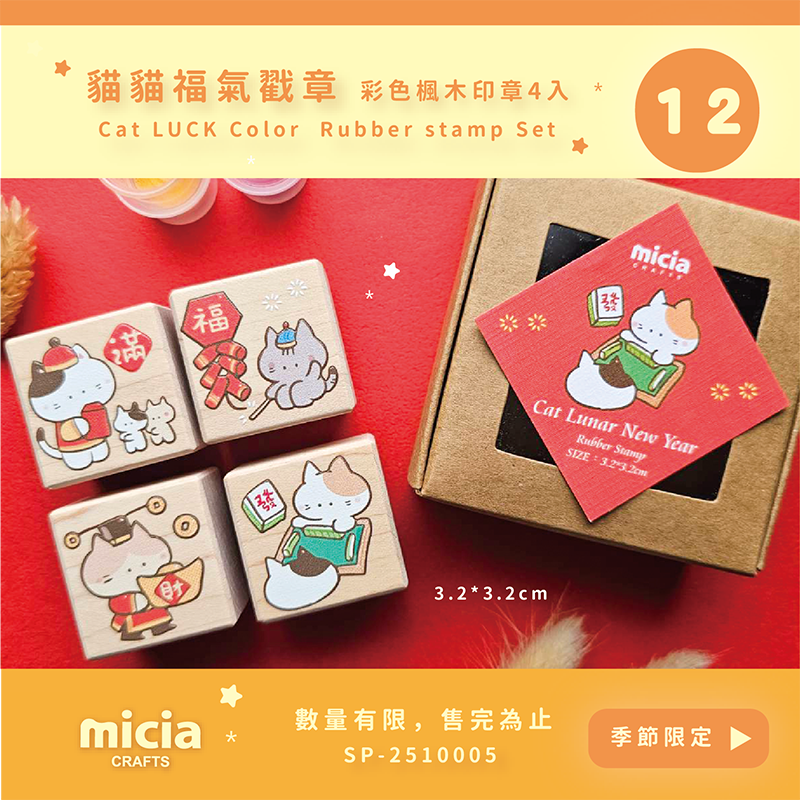 可愛好運的福氣貓貓戳展給你滿滿的祝福一盒共有四款圖案呦!