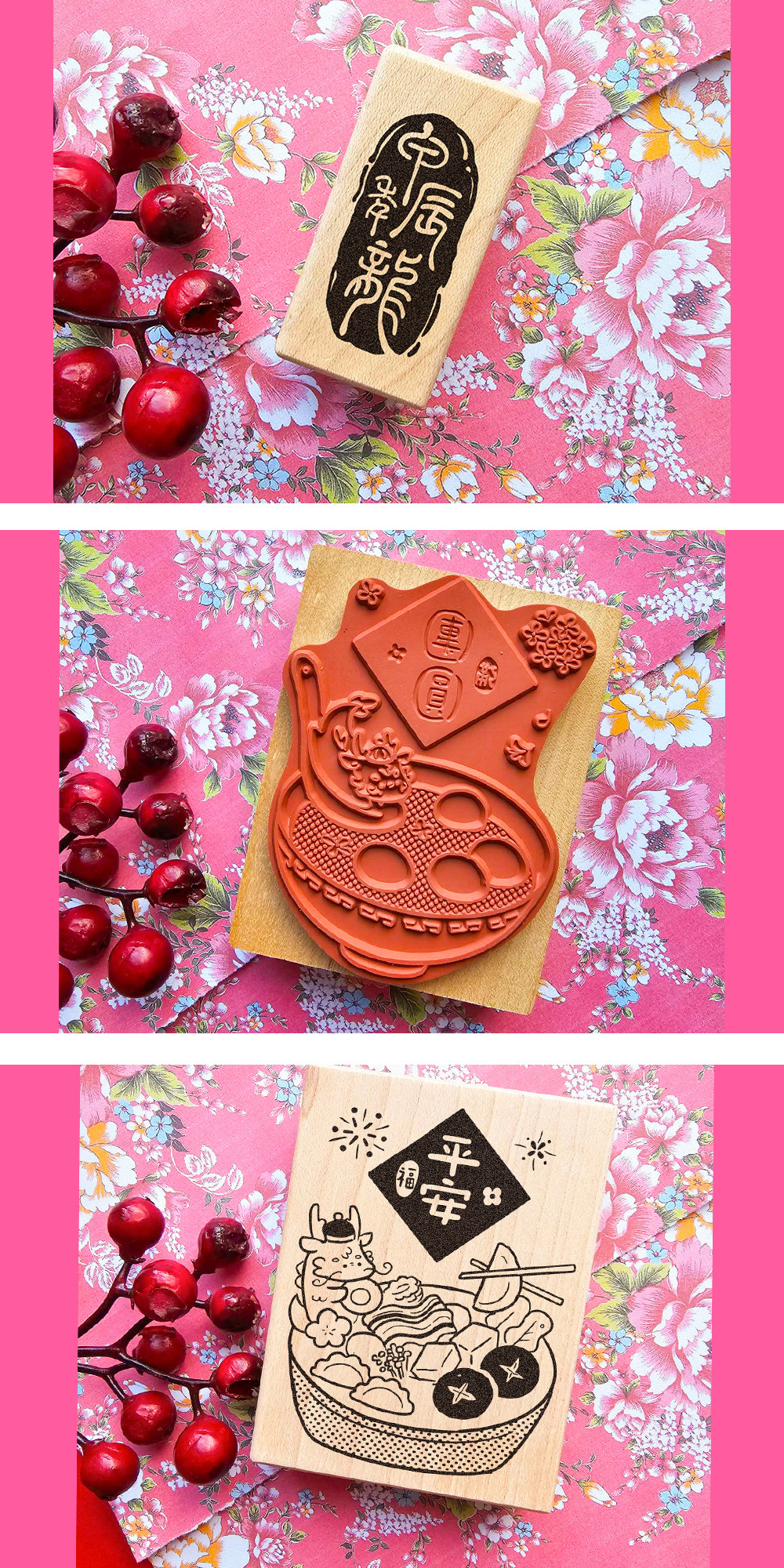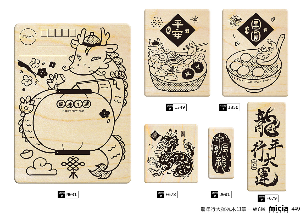 ✿I349 龍龍吃平安火鍋x龍年行大運楓木印章 6.4x8.5