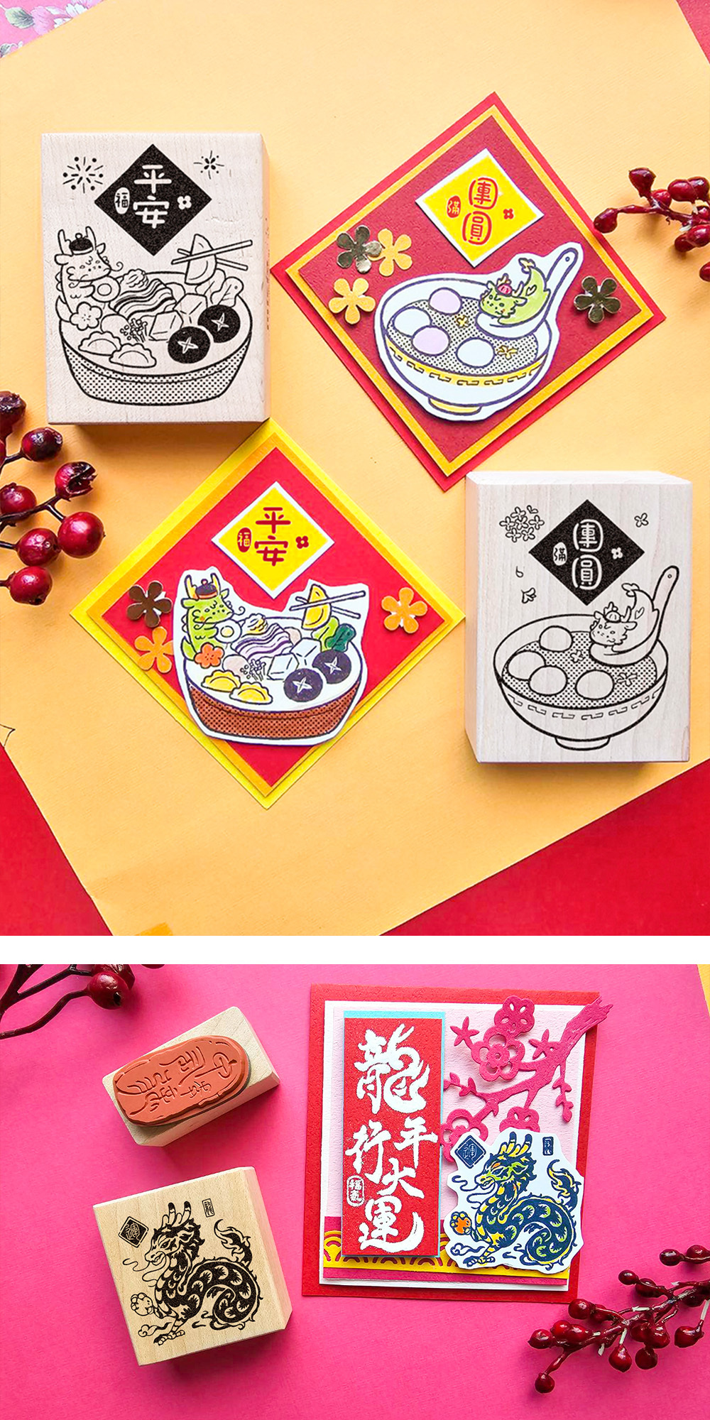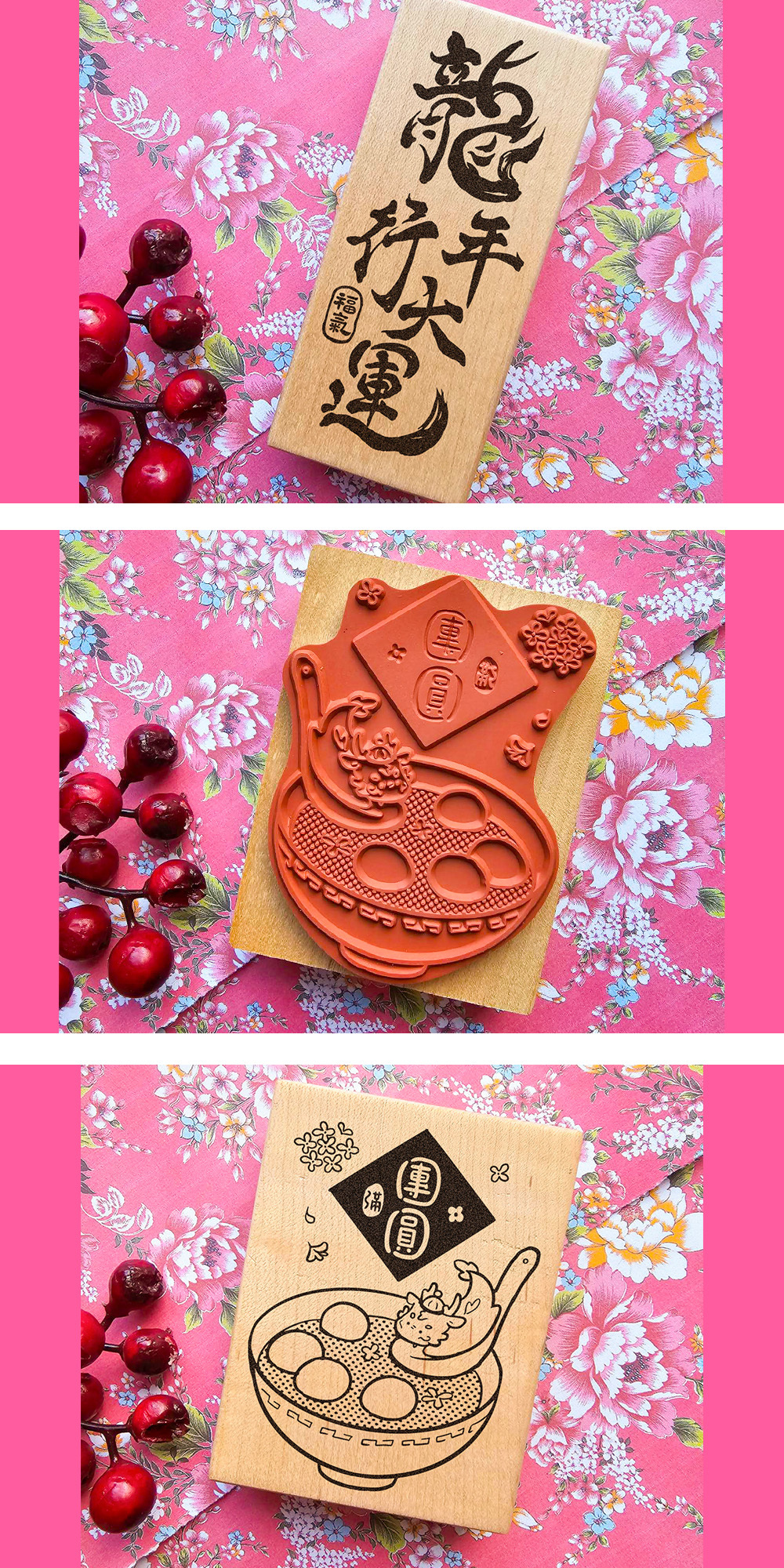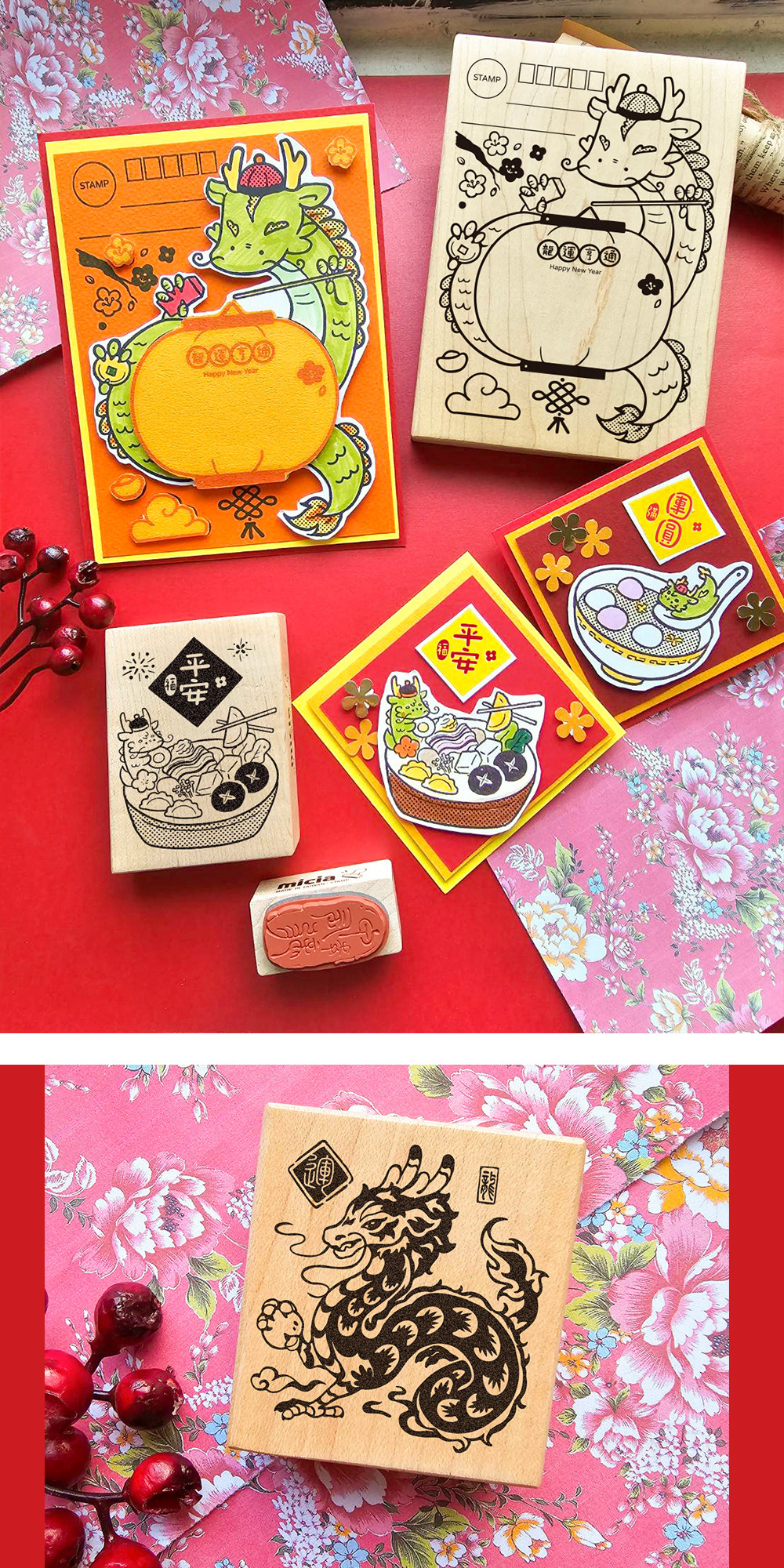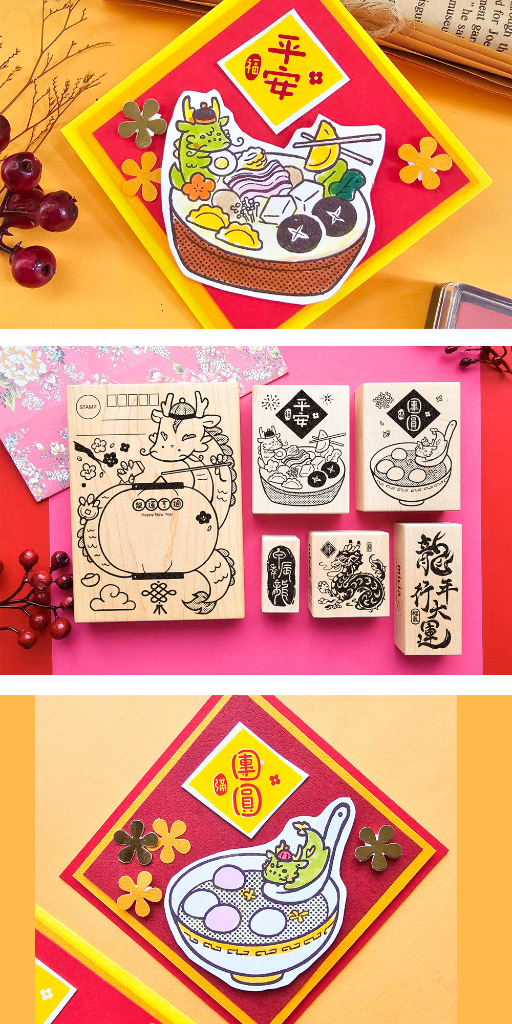 ✿I350 龍龍吃團圓湯圓x龍年行大運楓木印章 6.4x8.5