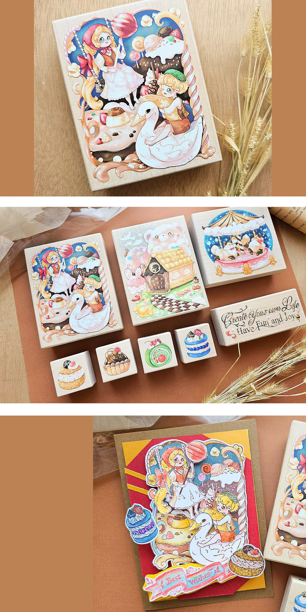 P446 糖果屋樂園 彩色楓木印章組 全套8顆