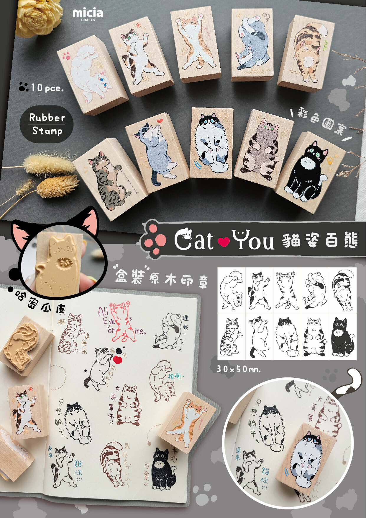 CYS 貓姿百態盒裝木頭彩色印章10入組