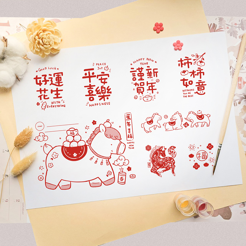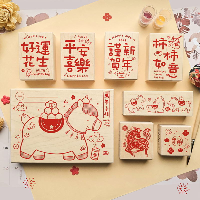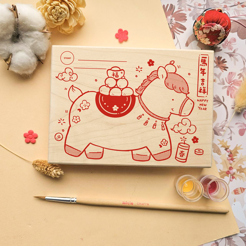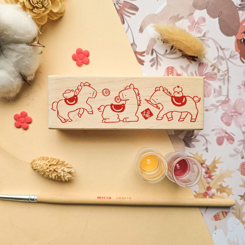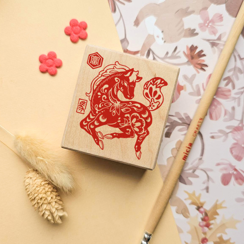 F719 富貴剪紙馬-5.1x5.6 cm-好運馬上來楓木印章