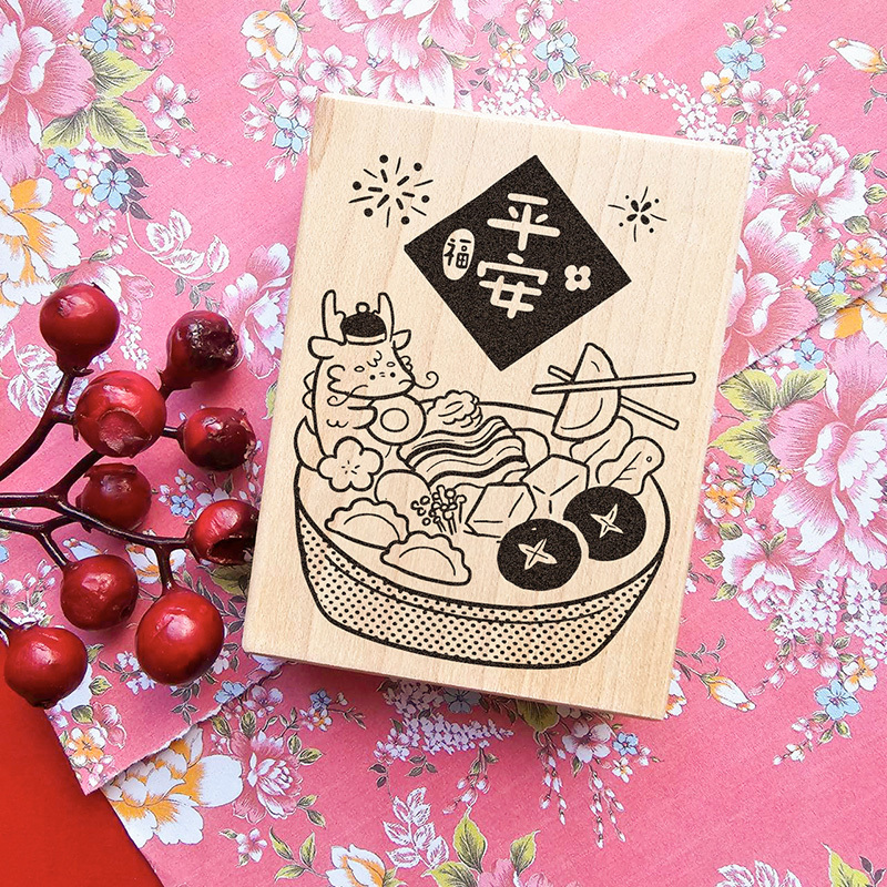✿I349 龍龍吃平安火鍋x龍年行大運楓木印章 6.4x8.5