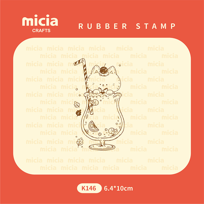 K146 貓貓漂浮氣水留言章6.4*10cm- 貓貓喫茶室彩色楓木印章