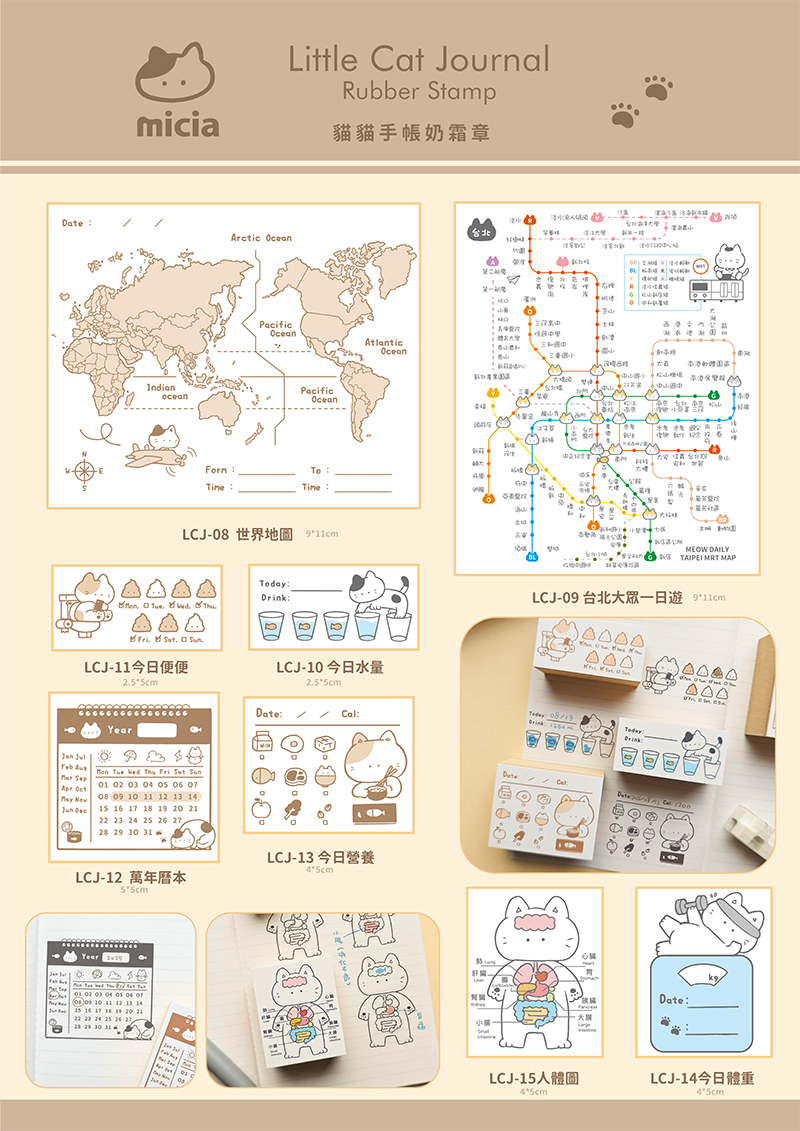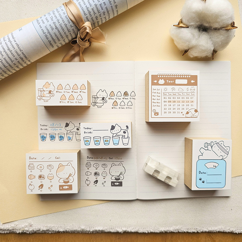 【季節預購】LCJ-14 今日體重4x5cm貓貓手帳奶霜印章