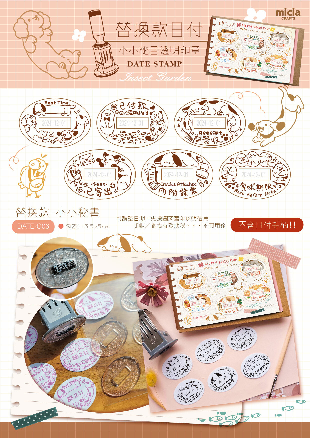 【此日期章為透明印章無手柄手柄要另外購買喔!】