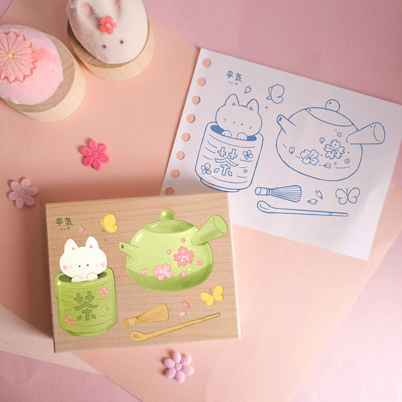 P466 櫻花和菓子彩色楓木印章