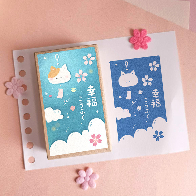 M098-金魚留言章9x9.8cm-櫻花和菓子彩色楓木印章