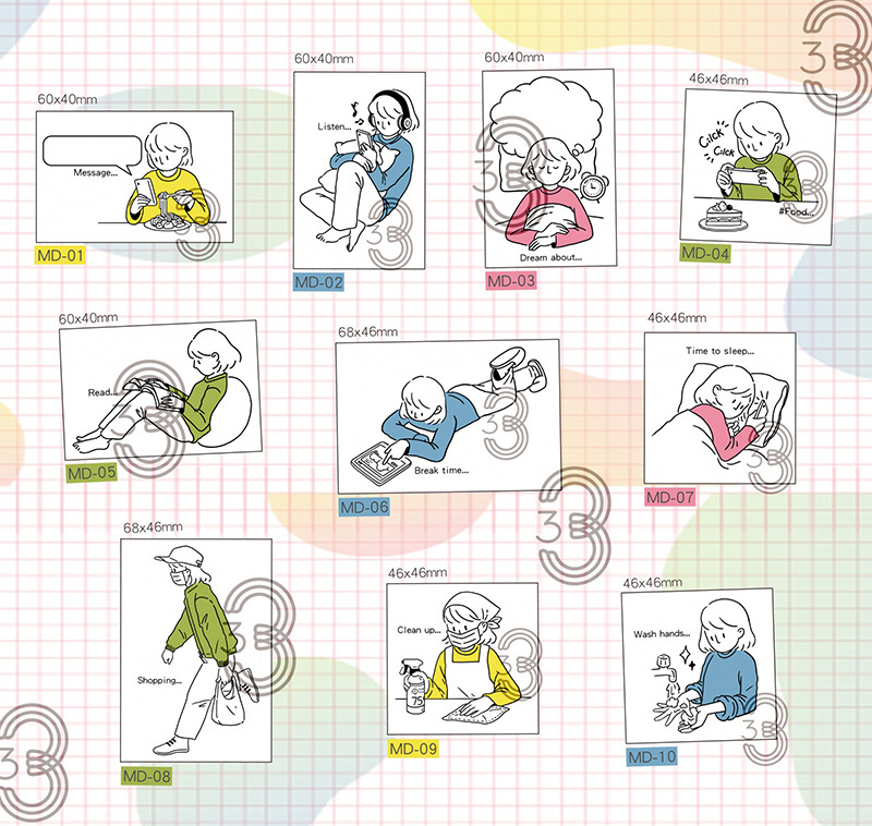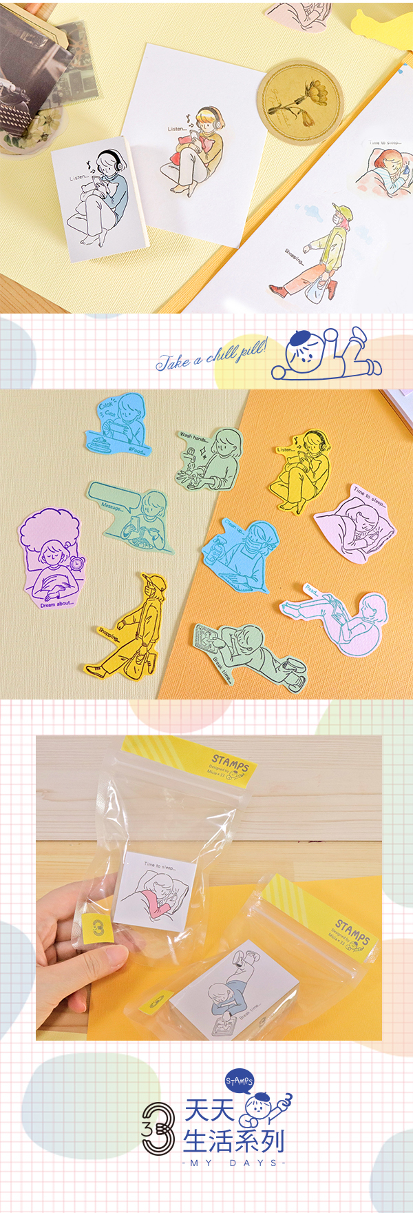 天天生活共有10款融入生活的實用印章可自己畫上眉毛與嘴吧唷 白色的質感簡約的配色,手帳愛好著必備