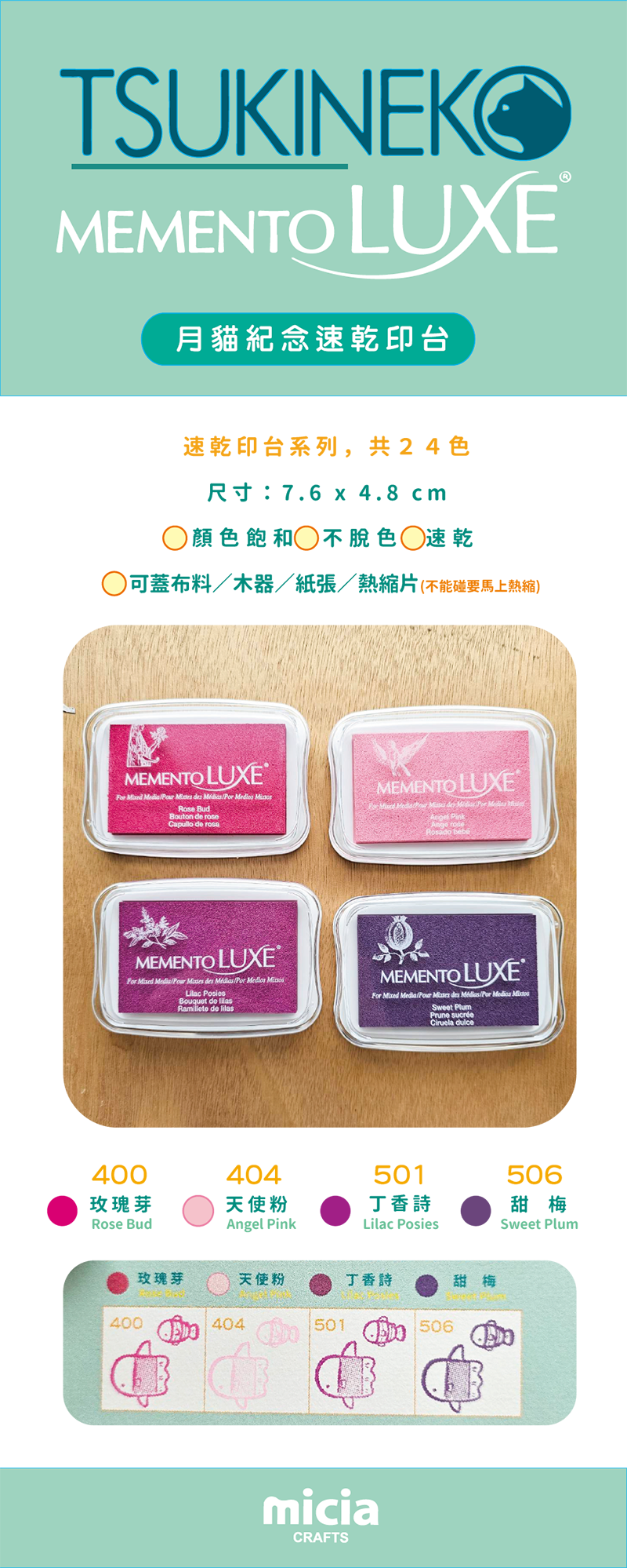 月貓速乾印台系列,共24色