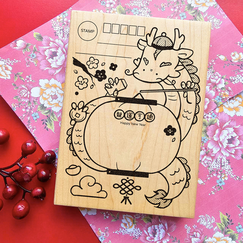 ✿N031 龍運亨通明信片x龍年行大運楓木印章 11.3x15.6