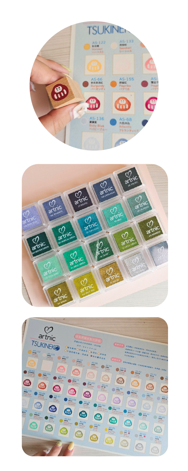 乾燥時間也會有所不同。使用時用印台均勻的輕拍在印章上,