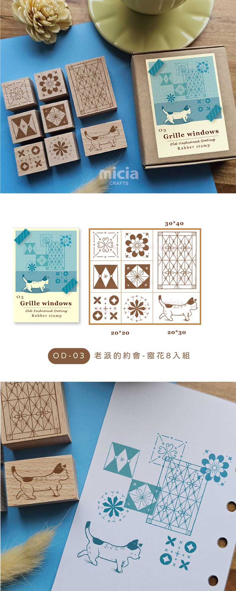 OD-03 Old-Fashioned Dating Grille windows Rubber stamp