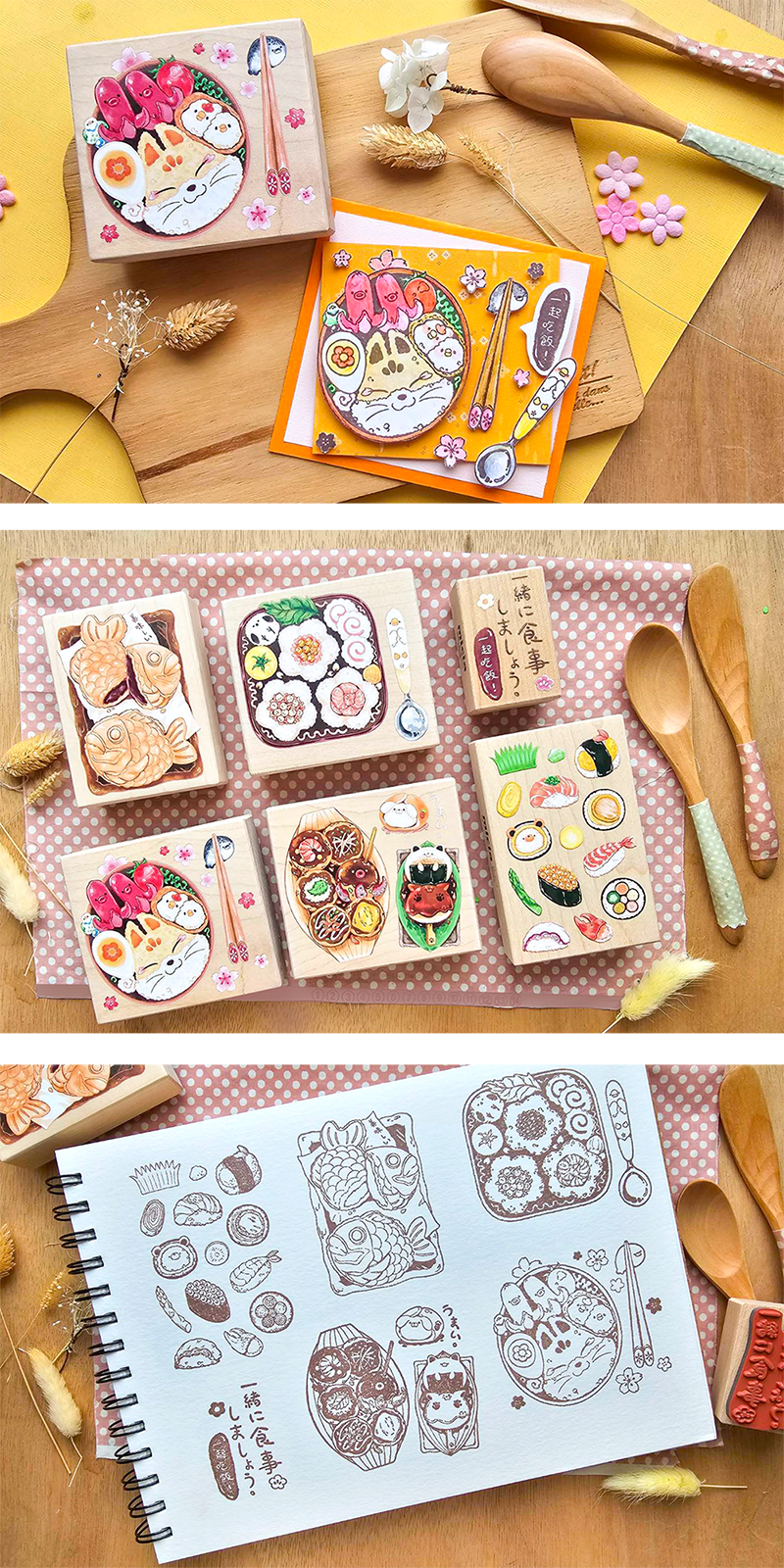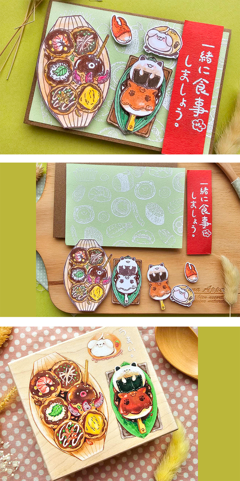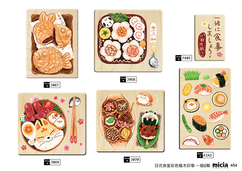 J070 章魚燒與糰子-日式食堂彩色楓木印章組