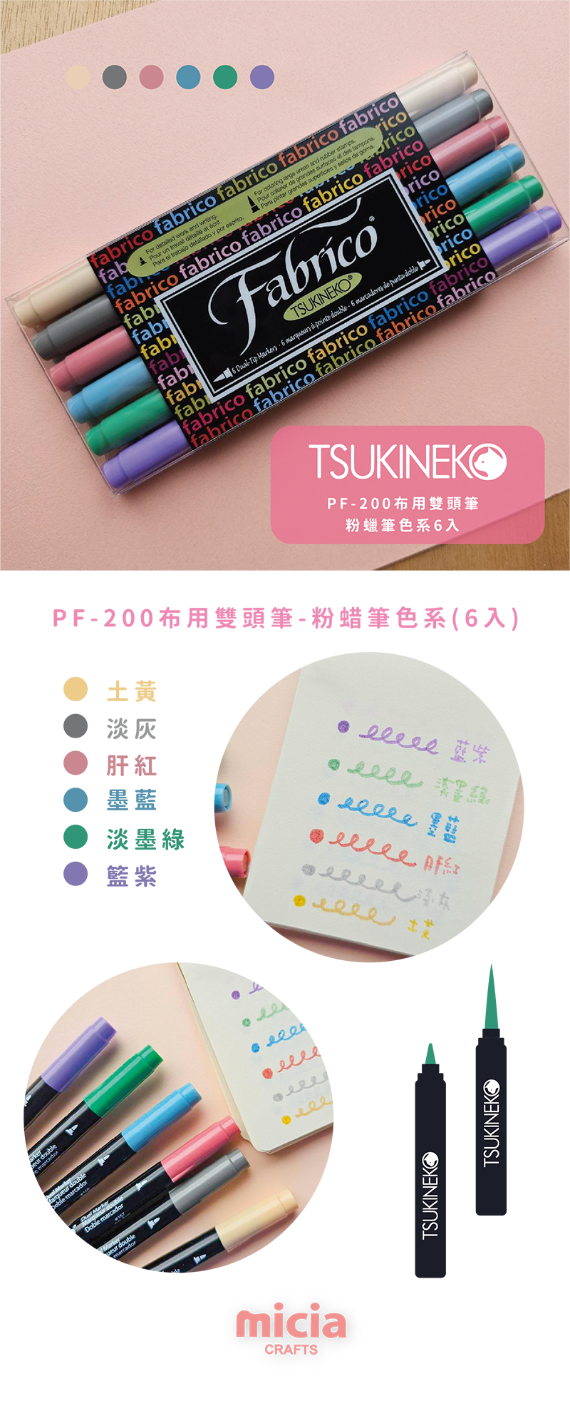✿PF-200布用雙頭筆-粉蜡筆色系(6入)