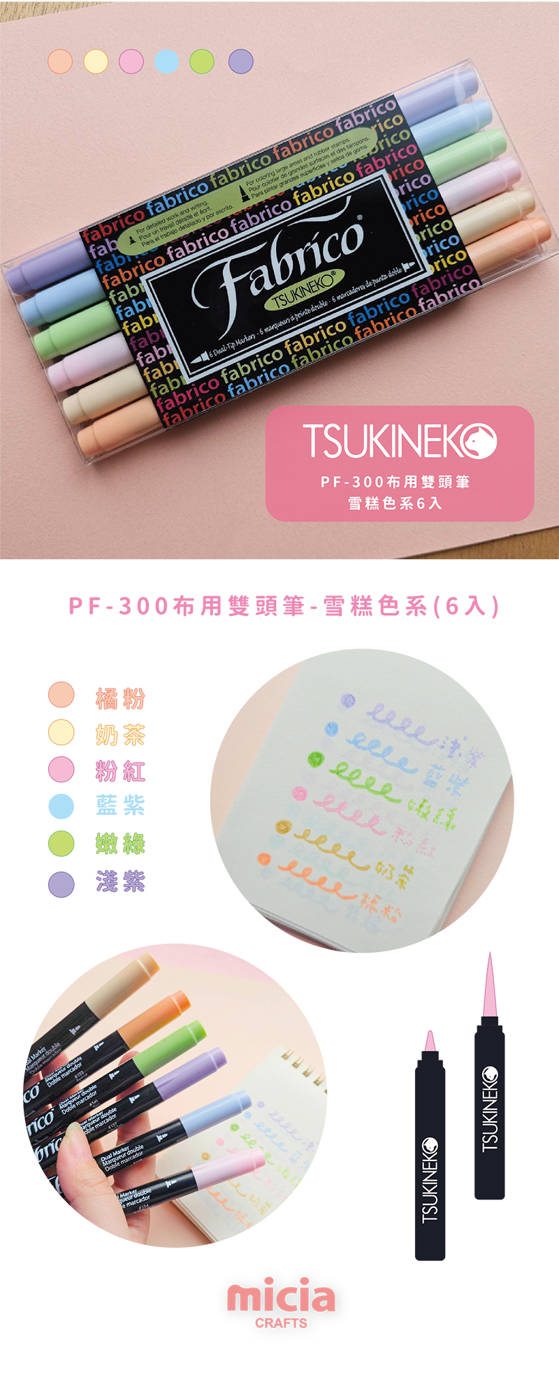 ✿PF-300布用雙頭筆-雪糕色系(6入)