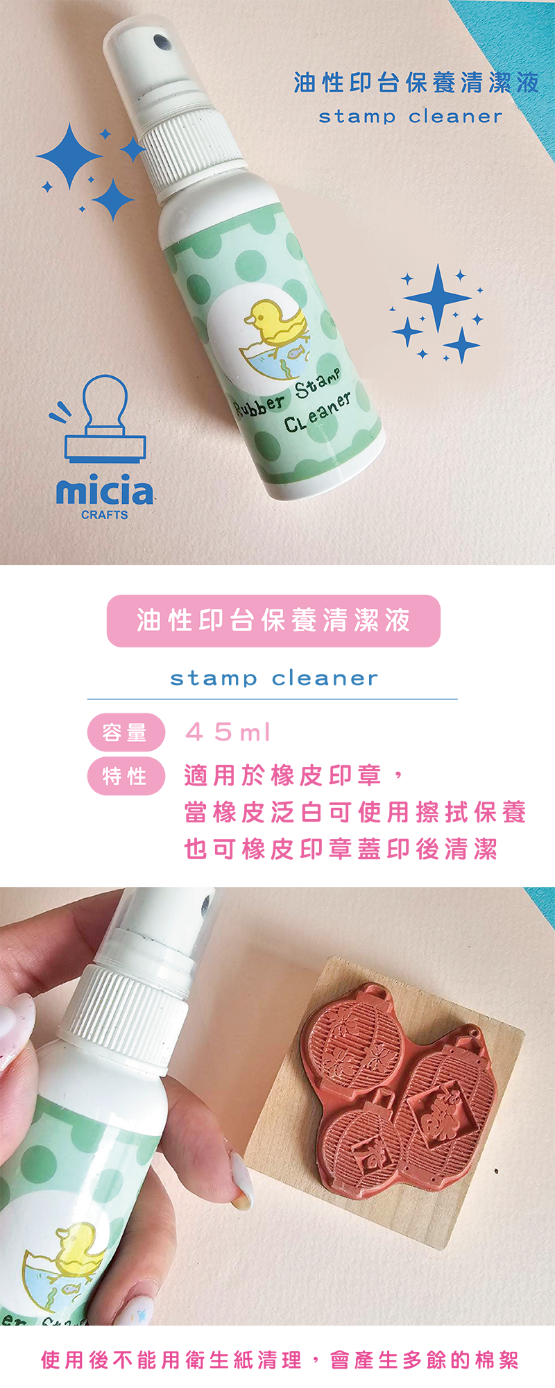 特性:專用於橡皮印章,可清潔各式水性或油性印台,特別是難以清除的定色印台